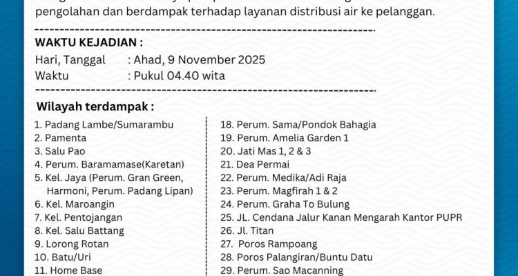 Gegara Suplai Air Baku dari Sungai Latuppa dan Sungai Mangkaluku ke IPAM 1 Abdul Madjid Berkurang, Mengakibatkan Distribusi Air Bersih Pelanggan PDAM Palopo Mengalami Gangguan
