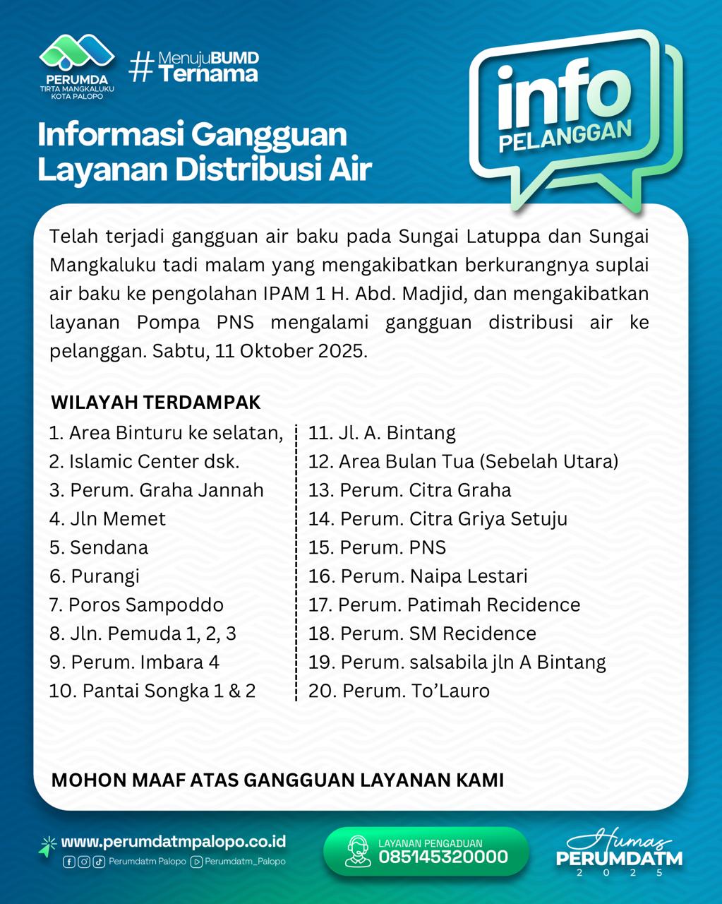 Gegara Suplai Air Baku dari Sungai Latuppa dan Sungai Mangkaluku ke IPAM 1 Abdul Madjid Berkurang, Mengakibatkan Distribusi Air Bersih Pelanggan PDAM Palopo Mengalami Gangguan