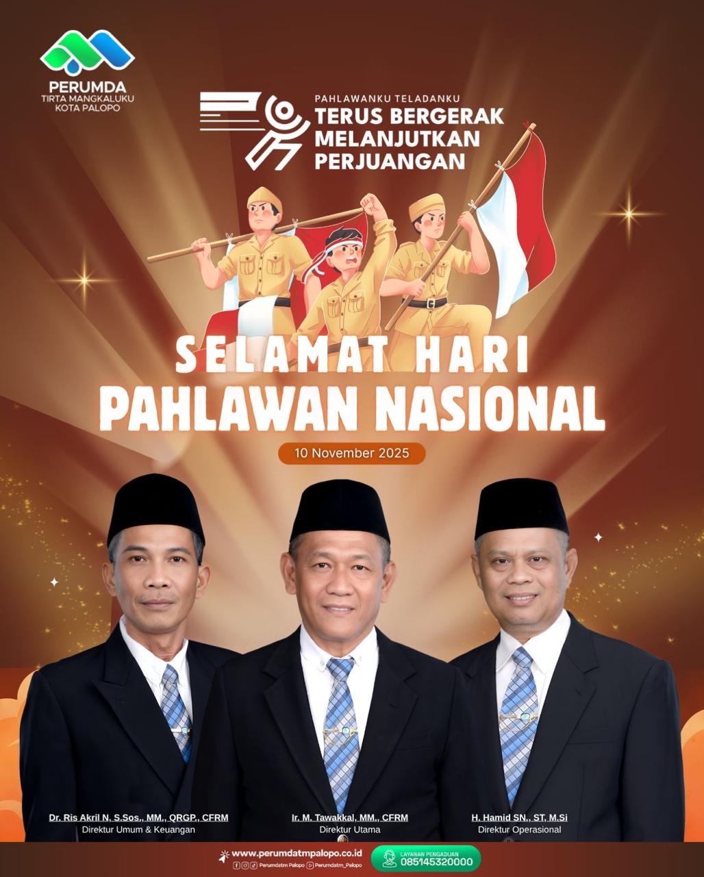 Direksi Perumda Tirta Mangkaluku Kota Palopo Mengucapkan Selamat Hari Pahlawan Nasional Tahun 2025adminNovember 10, 2025November 10, 2025Uncategorized68 Dilihat Post Views: 68 Jangan LewatkanInformasi Gangguan Pelayanan Distribusi Air di Kota PalopoInformasi Gangguan Pelayanan Distribusi Air di Kota PalopoMasmindo Gandeng Polres Luwu Perkuat Budaya Smart Riding di Awak Mas ProjectDireksi Perumda Tirta Mangkaluku Kota Palopo Mengucapkan Selamat Hari Jadi Sulawesi Selatan ke 356, Maju dan BerkarakterPokja Percepatan Investasi Kabupaten Luwu dan Masmindo Lanjutkan Fordes di Boneposi, Dorong Penguatan Ekonomi DesaPerumda Tirta Mangkaluku Kota Palopo Gelar Workshop untuk Perkuat Integritas Karyawan